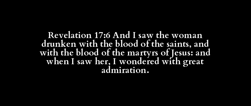Revelation 17:6 And I saw the woman drunken with the blood of the saints, and with the blood of the martyrs of Jesus: and when I saw her, I wondered with great admiration.