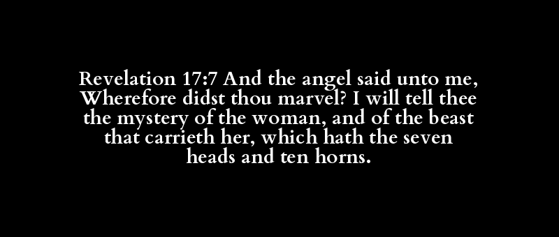 Revelation 17:7 And the angel said unto me, Wherefore didst thou marvel? I will tell thee the mystery of the woman, and of the beast that carrieth her, which hath the seven heads and ten horns.