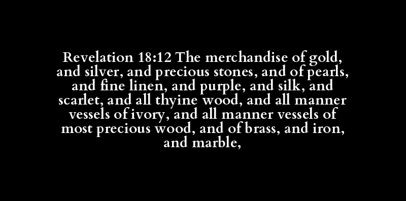 | burden, merchandise | gold | and, also, both, but, even, for, if, o.. | silver | and, also, both, but, even, for, if, o.. | dear, honourable, (more, most) preciou.. | mill-, stumbling-)stone | and, also, both, but, even, for, if, o.. | pearl | and, also, both, but, even, for, if, o.. | fine linen | and, also, both, but, even, for, if, o.. | purple | and, also, both, but, even, for, if, o.. | silk | and, also, both, but, even, for, if, o.. | scarlet (colour, coloured | and, also, both, but, even, for, if, o.. | all (manner of, means), alway(-s), any.. | thyine | staff, stocks, tree, wood | and, also, both, but, even, for, if, o.. | all (manner of, means), alway(-s), any.. | goods, sail, stuff, vessel | of ivory | and, also, both, but, even, for, if, o.. | all (manner of, means), alway(-s), any.. | goods, sail, stuff, vessel | after, among, X are, at, betwixt(-yond.. | dear, honourable, (more, most) preciou.. | staff, stocks, tree, wood | and, also, both, but, even, for, if, o.. | brass, money | and, also, both, but, even, for, if, o.. | iron | and, also, both, but, even, for, if, o.. | marble |