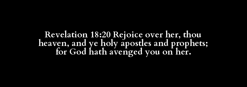 Revelation 18:20 Rejoice over her, thou heaven, and ye holy apostles and prophets; for God hath avenged you on her.