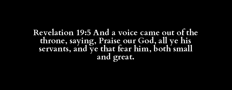 Revelation 19:5 And a voice came out of the throne, saying, Praise our God, all ye his servants, and ye that fear him, both small and great.