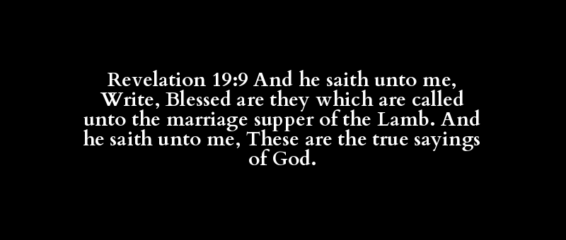 Revelation 19:9 And he saith unto me, Write, Blessed are they which are called unto the marriage supper of the Lamb. And he saith unto me, These are the true sayings of God.