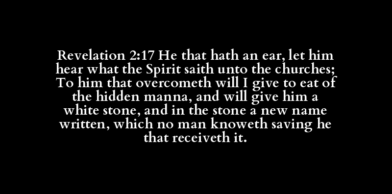 | [echo] | [ous] | [akouo] | [tis] | [pneuma] | [lego] | [ekklesia] | [autos] | [nikao] | [didomi] | [phago] | [apo] | [krupto] | [manna] | [kai] | [didomi] | [autos] | [leukos] | [psephos] | [kai] | [epi] | [psephos] | [kainos] | [onoma] | [grapho] | [hos] | [oudeis] | [ginosko] | [ei] | [lambano] |