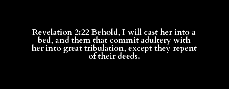 Revelation 2:22 Behold, I will cast her into a bed, and them that commit adultery with her into great tribulation, except they repent of their deeds.