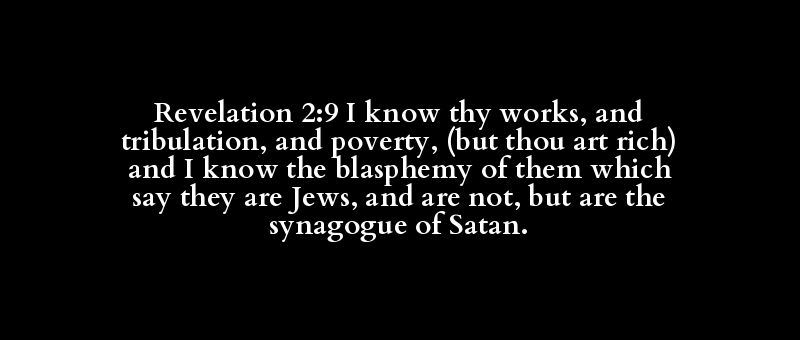 Revelation 2:9 I know thy works, and tribulation, and poverty, (but thou art rich) and I know the blasphemy of them which say they are Jews, and are not, but are the synagogue of Satan.