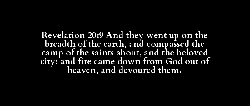 Revelation 20:9 And they went up on the breadth of the earth, and compassed the camp of the saints about, and the beloved city: and fire came down from God out of heaven, and devoured them.