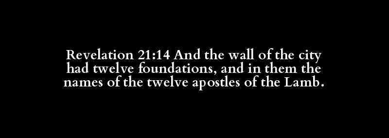 Revelation 21:14 And the wall of the city had twelve foundations, and in them the names of the twelve apostles of the Lamb.