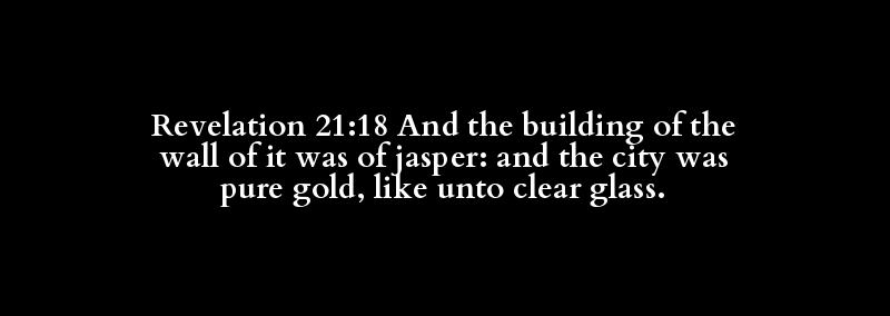 Revelation 21:18 And the building of the wall of it was of jasper: and the city was pure gold, like unto clear glass.