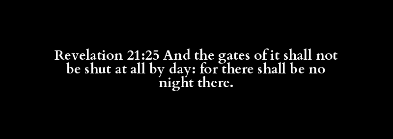 Revelation 21:25 And the gates of it shall not be shut at all by day: for there shall be no night there.