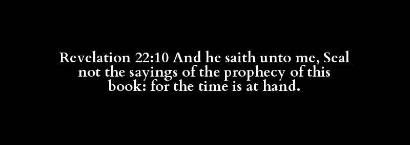 Revelation 22:10 And he saith unto me, Seal not the sayings of the prophecy of this book: for the time is at hand.