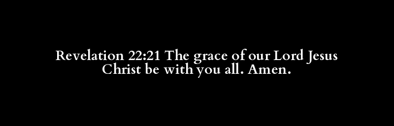 Revelation 22:21 The grace of our Lord Jesus Christ be with you all. Amen.