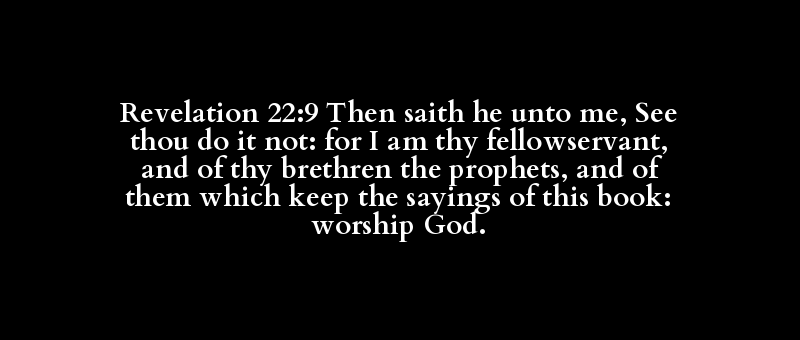 Revelation 22:9 Then saith he unto me, See thou do it not: for I am thy fellowservant, and of thy brethren the prophets, and of them which keep the sayings of this book: worship God.
