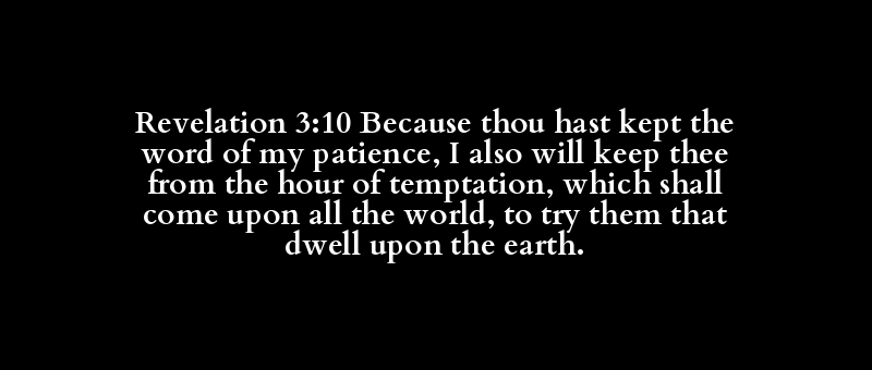 Revelation 3:10 Because thou hast kept the word of my patience, I also will keep thee from the hour of temptation, which shall come upon all the world, to try them that dwell upon the earth.