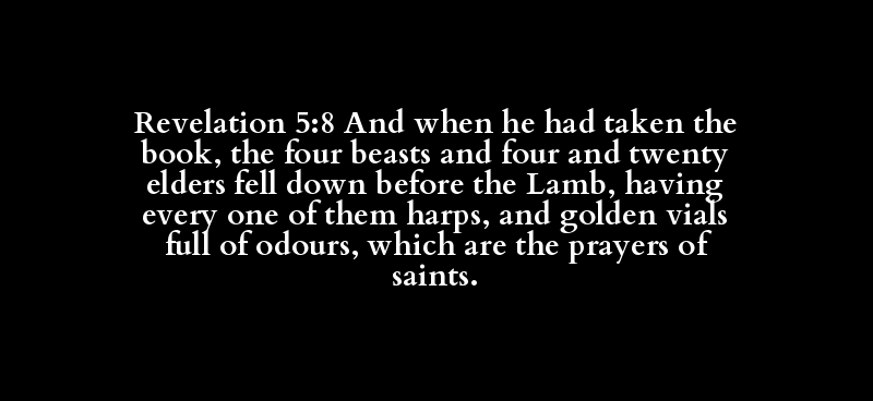 Revelation 5:8 And when he had taken the book, the four beasts and four and twenty elders fell down before the Lamb, having every one of them harps, and golden vials full of odours, which are the prayers of saints.