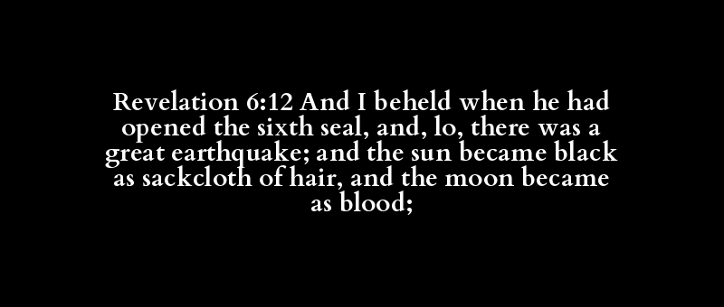 Revelation 6:12 And I beheld when he had opened the sixth seal, and, lo, there was a great earthquake; and the sun became black as sackcloth of hair, and the moon became as blood;