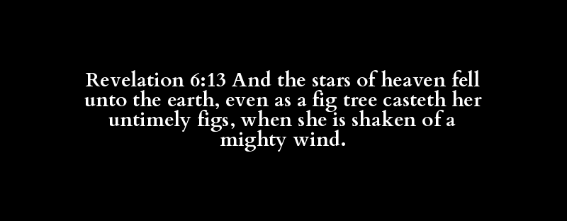 Revelation 6:13 And the stars of heaven fell unto the earth, even as a fig tree casteth her untimely figs, when she is shaken of a mighty wind.