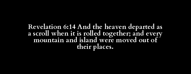 Revelation 6:14 And the heaven departed as a scroll when it is rolled together; and every mountain and island were moved out of their places.