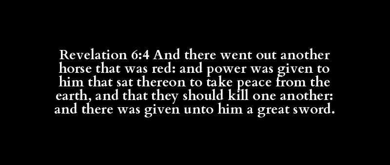 | [kai] | [exerchomai] | [allos] | [hippos] | [purrhos] | [kai] | [didomi] | [autos] | [kathemai] | [autos] | [epi] | [lambano] | [eirene] | [apo] | [ge] | [kai] | [hina] | [sphazo] | [allelon] | [kai] | [didomi] | [autos] | [megas] | [machaira] |
