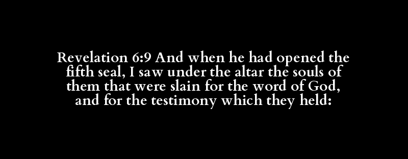 Revelation 6:9 And when he had opened the fifth seal, I saw under the altar the souls of them that were slain for the word of God, and for the testimony which they held: