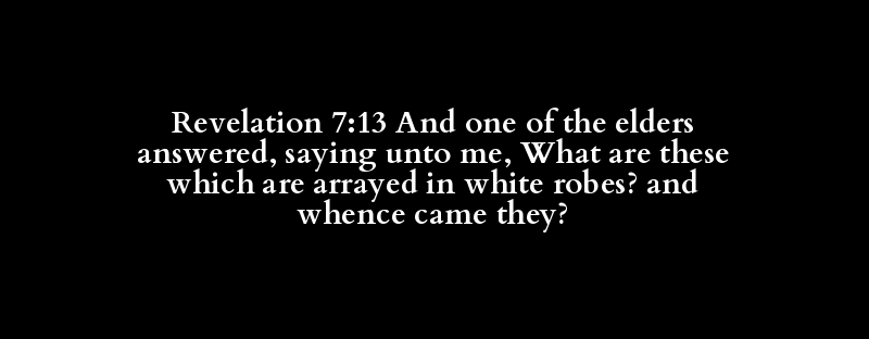 Revelation 7:13 And one of the elders answered, saying unto me, What are these which are arrayed in white robes? and whence came they?
