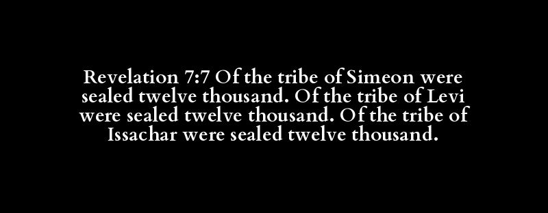 Revelation 7:7 Of the tribe of Simeon were sealed twelve thousand. Of the tribe of Levi were sealed twelve thousand. Of the tribe of Issachar were sealed twelve thousand.