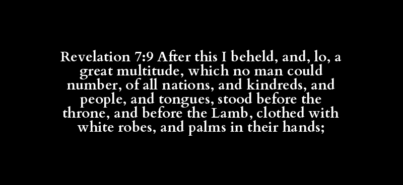 | μετά | ταῦτα | εἴδω | καί | ἰδού | πολύς | ὄχλος | ὅς | οὐδείς | δύναμαι | ἀριθμέω | αὐτός | ἐκ | πᾶς | ἔθνος | καί | φυλή | καί | λαός | καί | γλῶσσα | ἵστημι | ἐνώπιον | θρόνος | καί | ἐνώπιον | ἀρνίον | περιβάλλω | λευκός | στολή | καί | φοῖνιξ | ἐν | αὐτός | χείρ |
