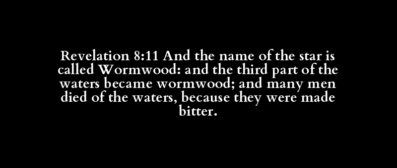 Revelation 8:11 And the name of the star is called Wormwood: and the third part of the waters became wormwood; and many men died of the waters, because they were made bitter.