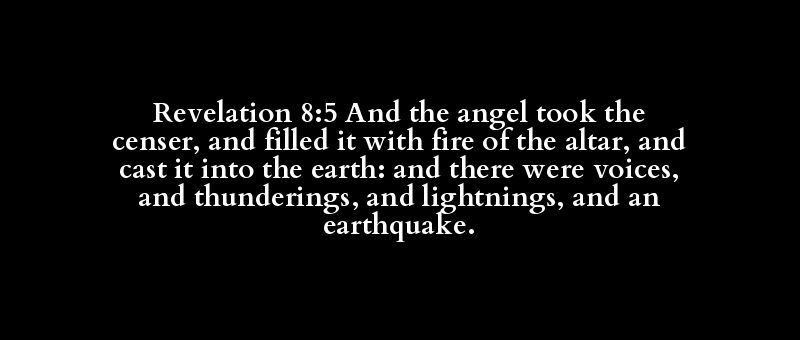 Revelation 8:5 And the angel took the censer, and filled it with fire of the altar, and cast it into the earth: and there were voices, and thunderings, and lightnings, and an earthquake.