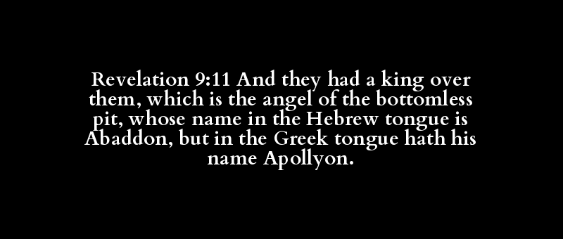 Revelation 9:11 And they had a king over them, which is the angel of the bottomless pit, whose name in the Hebrew tongue is Abaddon, but in the Greek tongue hath his name Apollyon.