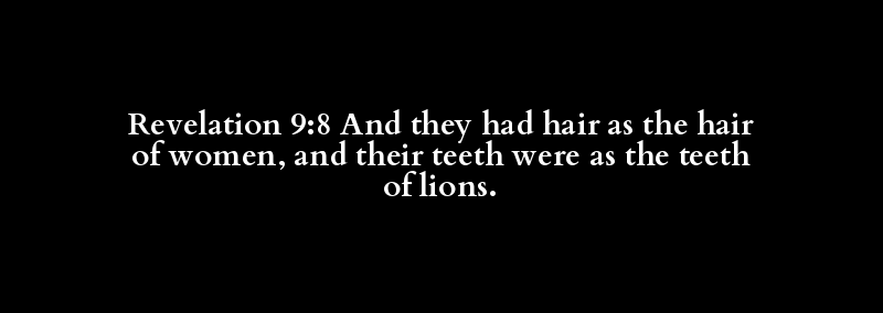 Revelation 9:8 And they had hair as the hair of women, and their teeth were as the teeth of lions.