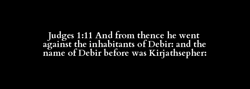 Judges 1:11 And from thence he went against the inhabitants of Debir: and the name of Debir before was Kirjathsepher: