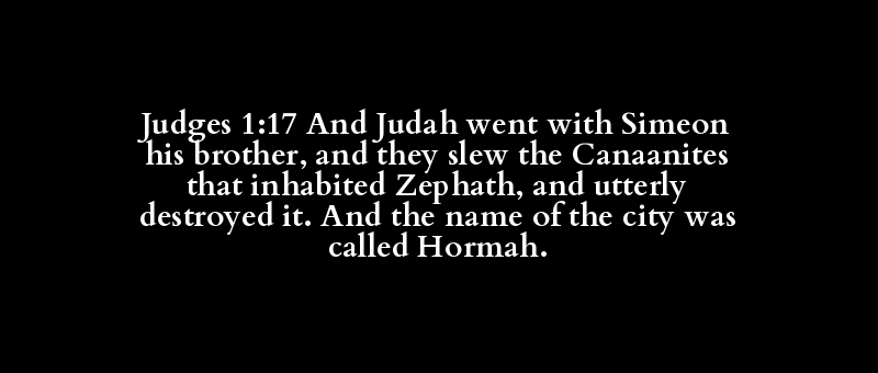 Judges 1:17 And Judah went with Simeon his brother, and they slew the Canaanites that inhabited Zephath, and utterly destroyed it. And the name of the city was called Hormah.