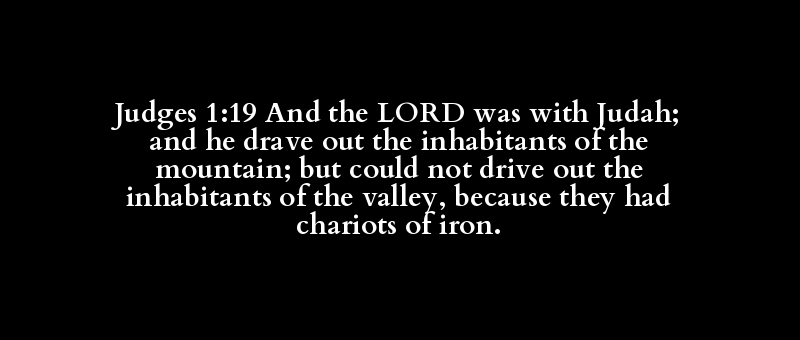 Judges 1:19 And the LORD was with Judah; and he drave out the inhabitants of the mountain; but could not drive out the inhabitants of the valley, because they had chariots of iron.