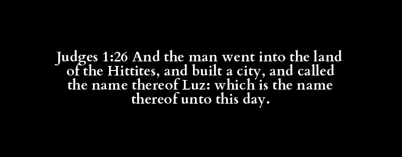 Judges 1:26 And the man went into the land of the Hittites, and built a city, and called the name thereof Luz: which is the name thereof unto this day.