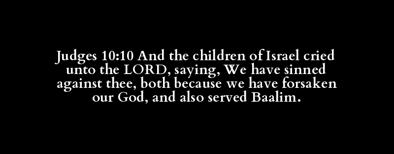 Judges 10:10 And the children of Israel cried unto the LORD, saying, We have sinned against thee, both because we have forsaken our God, and also served Baalim.