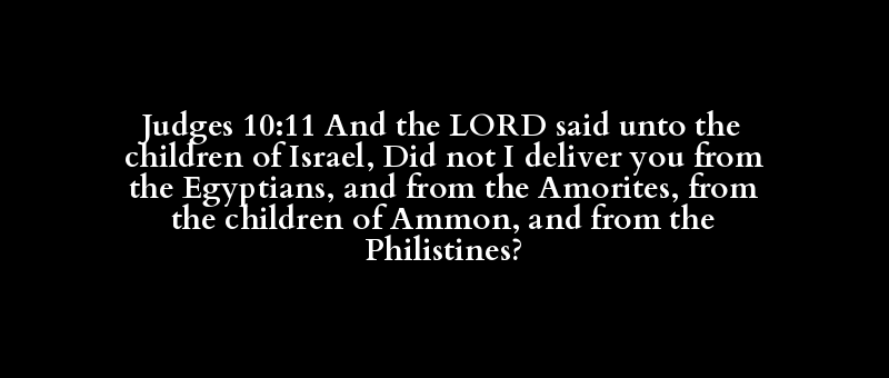 Judges 10:11 And the LORD said unto the children of Israel, Did not I deliver you from the Egyptians, and from the Amorites, from the children of Ammon, and from the Philistines?