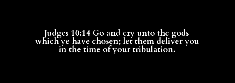 Judges 10:14 Go and cry unto the gods which ye have chosen; let them deliver you in the time of your tribulation.