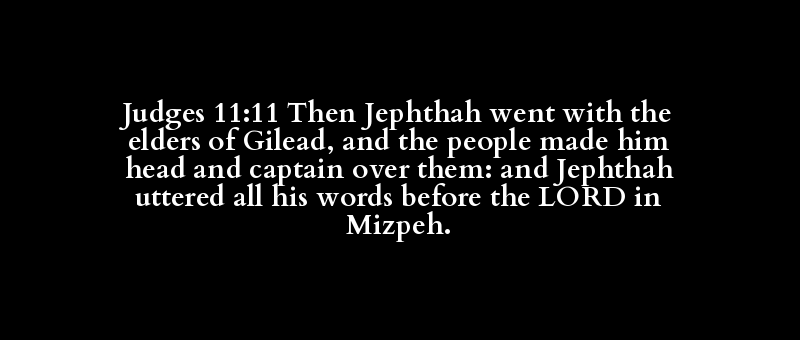 Judges 11:11 Then Jephthah went with the elders of Gilead, and the people made him head and captain over them: and Jephthah uttered all his words before the LORD in Mizpeh.