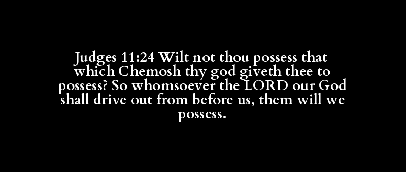 Judges 11:24 Wilt not thou possess that which Chemosh thy god giveth thee to possess? So whomsoever the LORD our God shall drive out from before us, them will we possess.