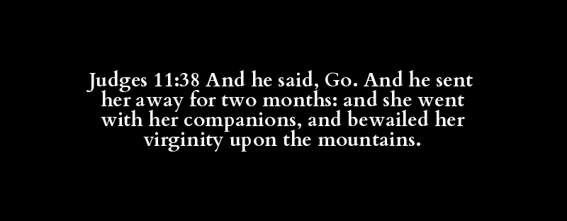 Judges 11:38 And he said, Go. And he sent her away for two months: and she went with her companions, and bewailed her virginity upon the mountains.