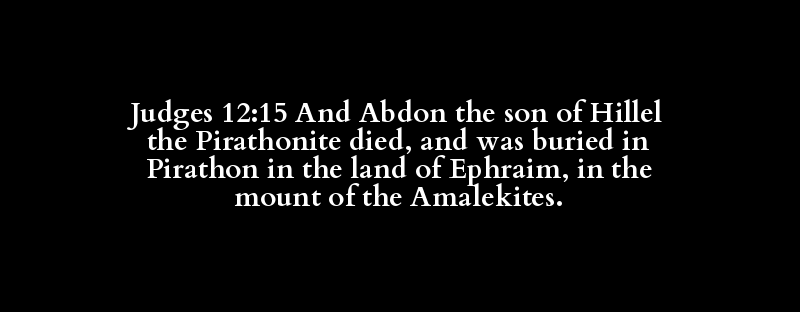 Judges 12:15 And Abdon the son of Hillel the Pirathonite died, and was buried in Pirathon in the land of Ephraim, in the mount of the Amalekites.