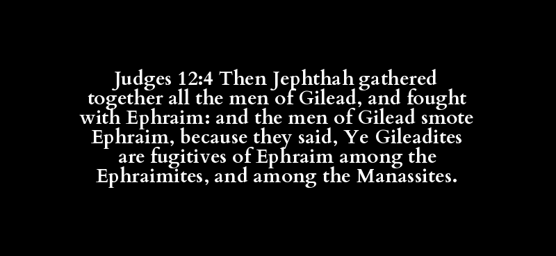 Judges 12:4 Then Jephthah gathered together all the men of Gilead, and fought with Ephraim: and the men of Gilead smote Ephraim, because they said, Ye Gileadites are fugitives of Ephraim among the Ephraimites, and among the Manassites.