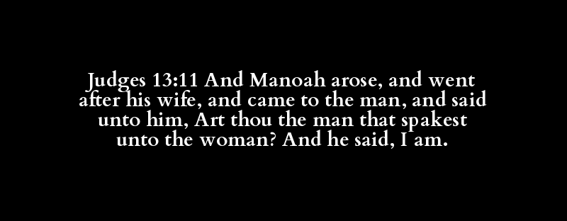 Judges 13:11 And Manoah arose, and went after his wife, and came to the man, and said unto him, Art thou the man that spakest unto the woman? And he said, I am.