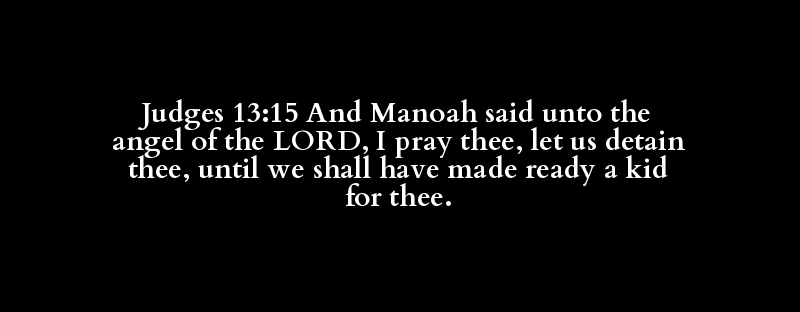 Judges 13:15 And Manoah said unto the angel of the LORD, I pray thee, let us detain thee, until we shall have made ready a kid for thee.