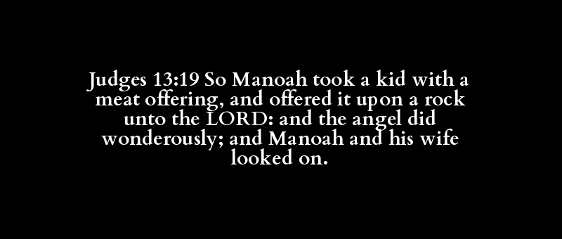 Judges 13:19 So Manoah took a kid with a meat offering, and offered it upon a rock unto the LORD: and the angel did wonderously; and Manoah and his wife looked on.