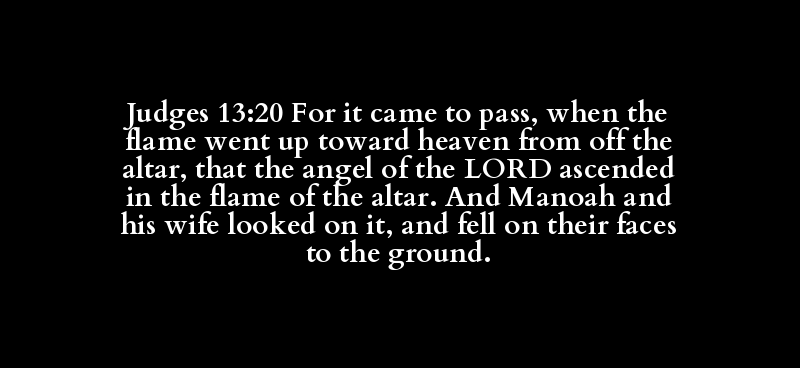 Judges 13:20 For it came to pass, when the flame went up toward heaven from off the altar, that the angel of the LORD ascended in the flame of the altar. And Manoah and his wife looked on it, and fell on their faces to the ground.