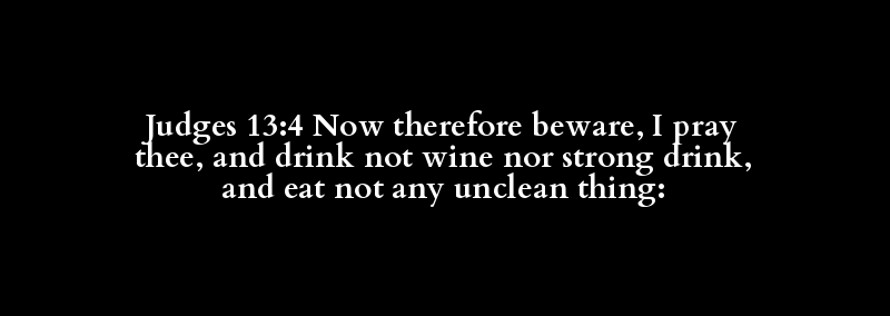 Judges 13:4 Now therefore beware, I pray thee, and drink not wine nor strong drink, and eat not any unclean thing: