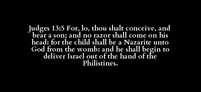 Judges 13:5 For, lo, thou shalt conceive, and bear a son; and no razor shall come on his head: for the child shall be a Nazarite unto God from the womb: and he shall begin to deliver Israel out of the hand of the Philistines.