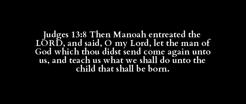 Judges 13:8 Then Manoah entreated the LORD, and said, O my Lord, let the man of God which thou didst send come again unto us, and teach us what we shall do unto the child that shall be born.