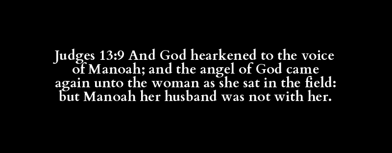 Judges 13:9 And God hearkened to the voice of Manoah; and the angel of God came again unto the woman as she sat in the field: but Manoah her husband was not with her.